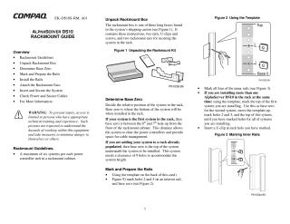 This document, the "ALPHASERVER DS10 RACKMOUNT GUIDE," provides step-by-step instructions for installing an AlphaServer DS10 system into a rackmount cabinet.