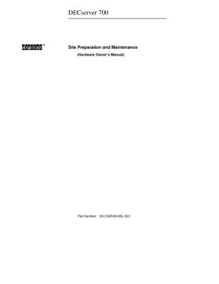 This document is the "DECserver 700 Site Preparation and Maintenance (Hardware Owner's Manual)," published in February 1993. It is primarily intended for hardware installers and network managers.
