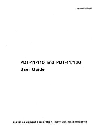 This user guide provides comprehensive documentation for the Digital Equipment Corporation PDT-11/110 and PDT-11/130 terminal-based computer systems. It introduces the systems' design for data entry and terminal applications, built around the LSI-11 microprocessor, and covers their general operation, configurations, and software licenses.