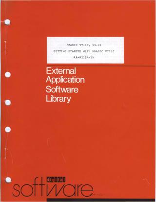 This document serves as a "Getting Started" guide for installing and initially using the MBASIC (also known as BASIC-80) software on a Digital Equipment Corporation (DEC) VT180 personal computer system. Developed by Microsoft Corporation and licensed by Digital, MBASIC allows users to program in the BASIC language.