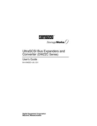 This document is the User's Guide for the Digital StorageWorks UltraSCSI Bus Expanders and Converter (DWZZC series), published in November 1997.