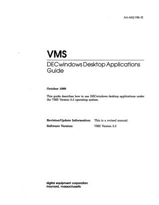 This document serves as a user guide for the VMS DECwindows desktop applications under the VMS Version 5.3 operating system. It provides comprehensive instructions on using a suite of integrated tools to enhance a user's workstation experience. Key applications covered include: