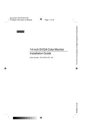 This document is the Installation Guide for the Digital EK-PCXCV-RX 14-inch SVGA Color Monitor, published in July 1994. It is intended for users installing the monitor.