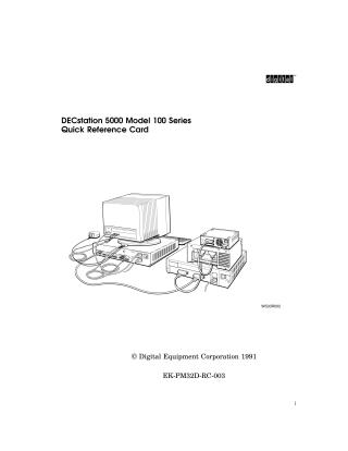 This document is a Quick Reference Card for the DECstation 5000 Model 100 Series, published in 1991. It serves as a concise technical guide covering essential operational and configuration aspects of the workstation.