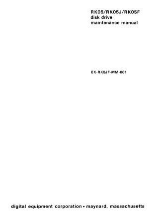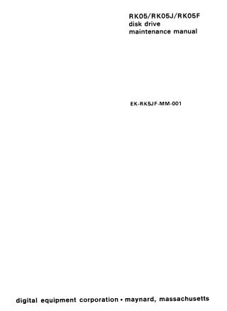 This document is the RK05/RK05J/RK05F disk drive maintenance manual, published by Digital Equipment Corporation (DEC) in November 1976.