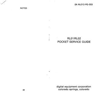 This "RL01/RL02 Pocket Service Guide" (EK-RL012-PG-003), published by Digital Equipment Corporation, provides comprehensive technical information and procedures for servicing the RL01 and RL02 Disk Subsystems.