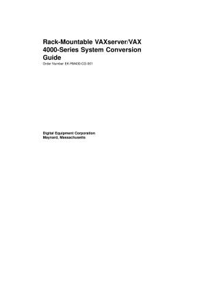 It provides detailed instructions for Digital Services personnel and licensed self-maintenance customers on how to convert Rack-Mountable VAX/VAXserver 4000 Model 300 systems to the Rack-Mountable VAX/VAXserver 4000 Model 500 systems using the 680XL-XX upgrade kit.