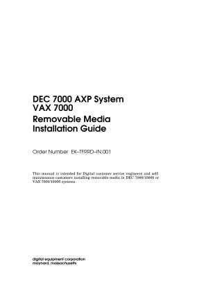 This document, the "DEC 7000 AXP System VAX 7000 Removable Media Installation Guide" (Order Number EK-TFRRD-IN.001), is intended for Digital customer service engineers and self-maintenance customers.
