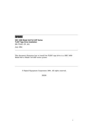 This document is an installation guide for the DEC TLZ07 Tape Drive, designed for use with DEC 4000 Model 6x0/7x0 AXP series systems.