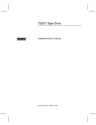 This document is the Installation/Owner's Manual for the Digital TSZ07 Tape Drive (Order Number: EK-TSZ07-IN-003), published in September 1992. Its primary purpose is to provide users with the necessary information to install and operate the TSZ07 Tape Drive.