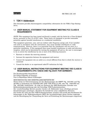 Overall, the document provides the necessary regulatory statements and user advisories to ensure the TZK11 Tape Backup Drive operates without causing electromagnetic interference in different global markets.