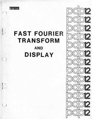 This document is a Programmer's Reference Manual for the FFTD (Fast Fourier Transform + Display) program, designed for the 8K PDP-12B computer with EAE. The FFTD program performs Fast Fourier Transforms (FFT) and Inverse Fast Fourier Transforms (IFFT) on real or complex data sets containing 4 to 1024 points. Data can be read from and written to LAP6-DIAL, LINCtape, or disk units.