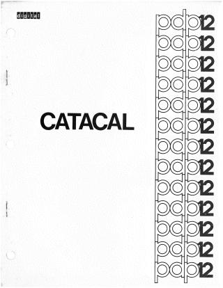 The program requires a minimum configuration of a PDP-12A computer with 8K of core memory and a KW12A clock. A faster version, CATACALE, is available for systems with an Extended Arithmetic Element (EAE). The handbook details initial starting procedures, data input methods, and provides an example workflow. It also includes a command summary and instructions for assembling CATACAL from source.