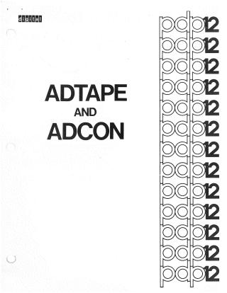 This document serves as a user manual for two Digital Equipment Corporation (DEC) programs, ADTAPE and ADCON, designed for data acquisition and manipulation on a PDP-12A system with 4K core memory and a KW12A clock.