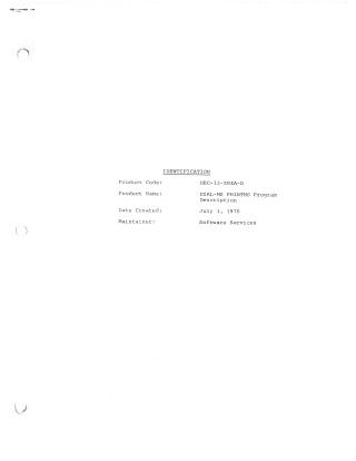 The PRINTMS program specifically handles printing source programs to a Teletype. It can print from a named file area or the system's Working Area. The process involves reading program blocks, converting them to 8-bit ASCII, and printing until an end-of-file character or a carriage return is encountered. The program also features line control, allowing it to skip a specified number of lines before printing and to print only a designated range of lines. If the specified line range is invalid (ending line number is less than starting line number), nothing is printed, and the DIAL system is restarted. PRINTMS is a two-block program (363 and 364), residing in memory locations 5000-5777.