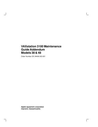 This document, the "VAXstation 3100 Maintenance Guide Addendum Models 38 & 48," published in September 1989, is a supplemental guide for Digital Customer Service personnel and self-maintenance customers.