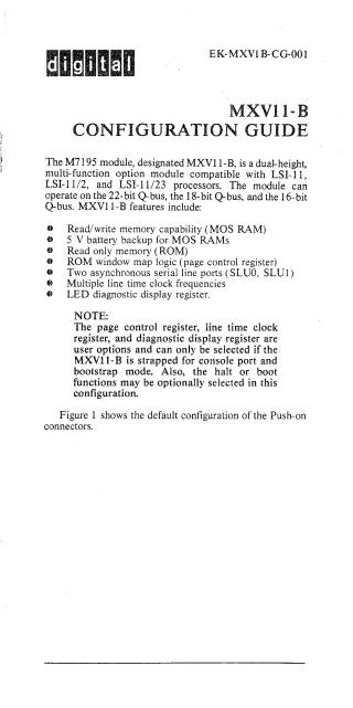 This document is a configuration guide for the Digital Equipment Corporation's MXV11-B module (M7195).