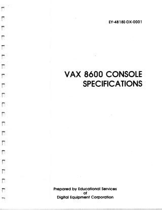 VAX 8600 Console Specifications