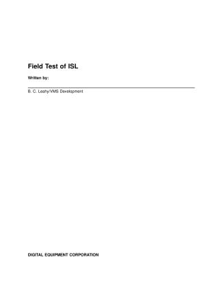 This document outlines the field test plan for the Initial System Load (ISL) software, designed for Digital Equipment Corporation's 6000 and 9000 CPU platforms. The primary objective is to test the networked ISL function in combination with the InfoServer 100 and VMS 5.4 field test software, enabling VMS installation from CD-ROM over an Ethernet network onto a client's local disk.