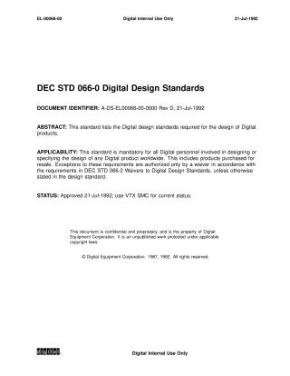 This document, DEC STD 066-0 Digital Design Standards, dated July 21, 1992, lists the mandatory internal design standards for Digital products.