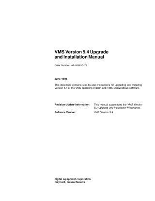 VMS Version 5.4 Upgrade and Installation Manual Jun1990
