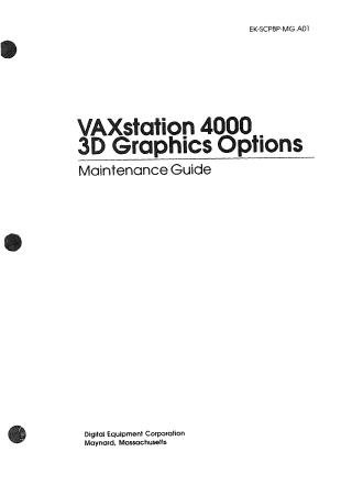 This document is the "VAXstation 4000 3D Graphics Options Maintenance Guide" (EK-SCP8P-MG.A01), published in March 1992 by Digital Equipment Corporation.
