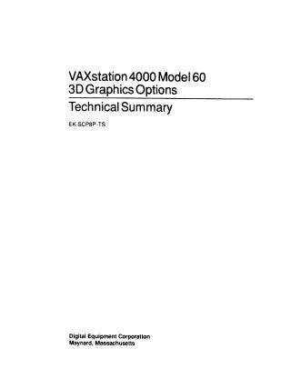 This document provides a technical summary of the VAXstation 4000 Model 60's 3D Graphics Options: SPXg and SPXgt. These are high-resolution (1280x1024) 3D graphics accelerators for the VAX/VMS environment.