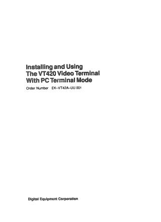 This document is a comprehensive guide for installing, operating, and troubleshooting the Digital Equipment Corporation VT420 video terminal, particularly when configured for PC Terminal Mode.