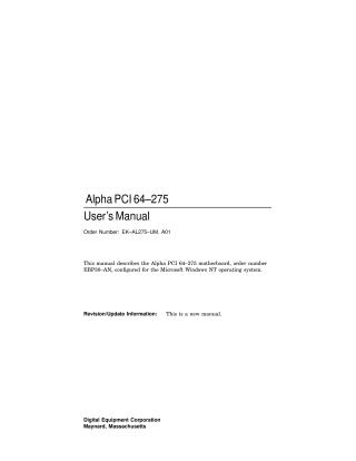 This manual describes the Alpha PCI 64-275 motherboard, an embedded and real-time technical OEM product designed for high-performance systems running Microsoft Windows NT.