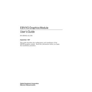 This guide provides comprehensive information on the EBVXG graphics module for the DIGITAL AXPvme single-board computer. It details the module's function, installation procedures, configuration, and specifications.