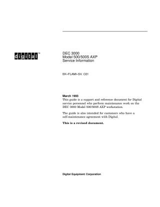 This document serves as a comprehensive support and reference guide for Digital service personnel and customers performing self-maintenance on the DEC 3000 Model 500/500S AXP workstation. It provides detailed information across various aspects of the system, including: