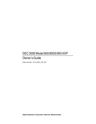 This document is a comprehensive owner's guide for the DEC 3000 Model 800/800S/900 AXP workstation and server systems. It provides detailed instructions for users on how to install, operate, and maintain these high-performance, 64-bit computing systems, which feature Digital's DECchip RISC processors.