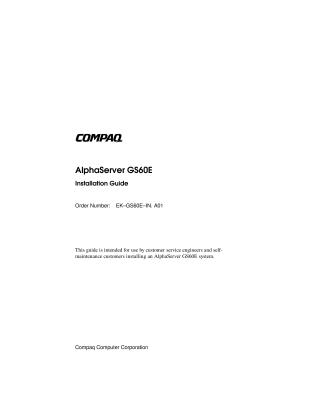 This document serves as an installation guide for the Compaq AlphaServer GS60E system, intended for customer service engineers and self-maintenance customers. It provides a comprehensive, step-by-step procedure for system setup.