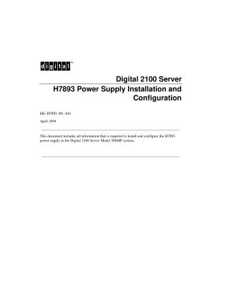 This document provides a comprehensive guide for installing and configuring the H7893 power supply in the Digital 2100 Server Model 500MP system. It details a four-step process for proper setup: