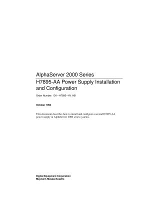 This document provides instructions for installing and configuring a second H7895-AA power supply in AlphaServer 2000 series systems. It details three power supply operating modes: Single, Dual (Redundant), and Dual (Full Power).