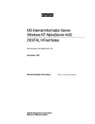 This document, "DIGITAL HiTest Notes," provides an overview and detailed technical information about the interoperability test results for the Microsoft Internet Information Server (IIS) Windows NT AlphaServer 4x00 HiTest Suite. The primary goal of a HiTest Suite is to offer pre-qualified, reliable, and high-performance system configurations for specific customer solutions.