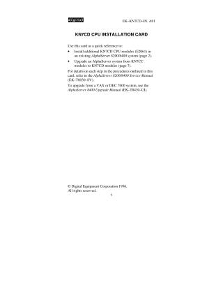 This document serves as a quick reference guide for installing KN7CD CPU modules in AlphaServer 8200/8400 systems. It outlines two primary procedures: