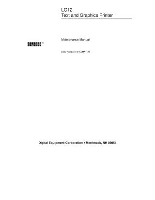 This document is a comprehensive maintenance manual for the LG12 Text and Graphics printer, intended for field service technicians. It provides a detailed overview of the printer's functional elements, including the control panel, common controller board (CCB), mechanism driver board, hammer driver board, auto-ranging power supply, and print mechanism. The manual explains the principles of line matrix printing and character generation, followed by sections on preventive maintenance, covering routine cleaning.