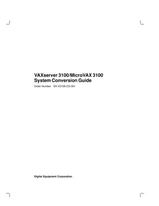 This document, the "VAXserver 3100/MicroVAX 3100 System Conversion Guide" (EK-V3100-CG-001) from Digital Equipment Corporation (May 1990), provides detailed, step-by-step instructions for converting an existing VAXserver 3100 system (Model 10 or Model 20) into a MicroVAX 3100 timesharing system.