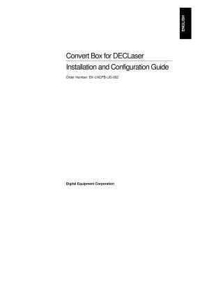 This document is an installation and configuration guide for the "Convert Box for DECLaser," a device designed to enable newer Digital laser printers to process print jobs originally intended for older DEC PPL3 printers. The box acts as an intermediary, connecting to the host computer via a serial interface and to the target printer via a parallel interface.