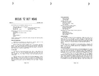 This issue of the DECUS 12 Bit News (Number 43, September 1983) is a condensed update, reporting significant developments and challenges for the 12-bit user community.