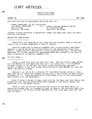 This issue of the DECUS 12 Bit News announces significant developments for 12-bit systems, particularly the DECmate II.