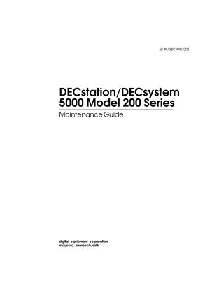 This document is a maintenance guide for the DECstation/DECsystem 5000 Model 200 Series computers. It covers various aspects of system maintenance, including hardware overview, console and operating modes, troubleshooting procedures, and electronic component service operations.