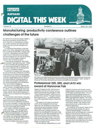 - Product Awards: Digital's Professional 325, 350 personal computers, and the LA12 printer received a "Good Industrial Design" award at the Hannover Fair in West Germany.