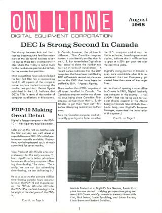 This issue of the Digital Equipment Corporation (DEC) newsletter highlights the company's significant growth and operational milestones in August 1968. Key updates include: