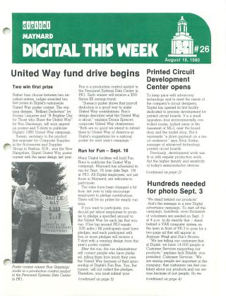 This issue of Digital This Week (August 18, 1980) covers internal company news and community announcements for Digital Equipment Corporation. Key highlights include: