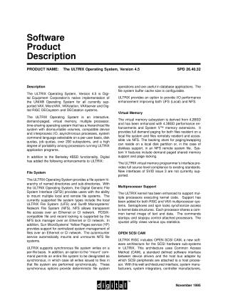 The ULTRIX Operating System, Version 4.5, is Digital Equipment Corporation's native UNIX® implementation for its VAX, MicroVAX, VAXstation, VAXserver, Digital RISC DECsystem, and DECstation systems. It functions as an interactive, demand-paged, virtual memory, multi-processor, time-sharing operating system.