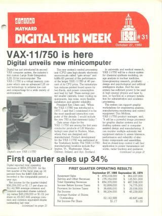 - Product Launch: The main feature is the announcement of the VAX-11/750, a new, compact, 32-bit minicomputer utilizing custom LSI circuit technology.