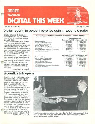 This issue of Digital This Week (dated January 26, 1981) provides a corporate update for employees of Digital Equipment Corporation. Key highlights include: