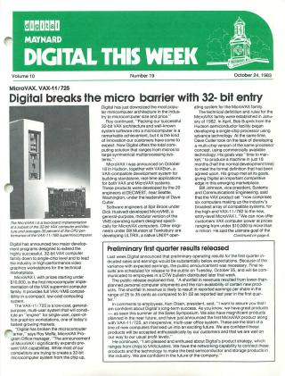 - Product Announcements: The company introduced the MicroVAX I and VAX-11/725, emphasizing its expansion into the microcomputer market with 32-bit VAX architecture.